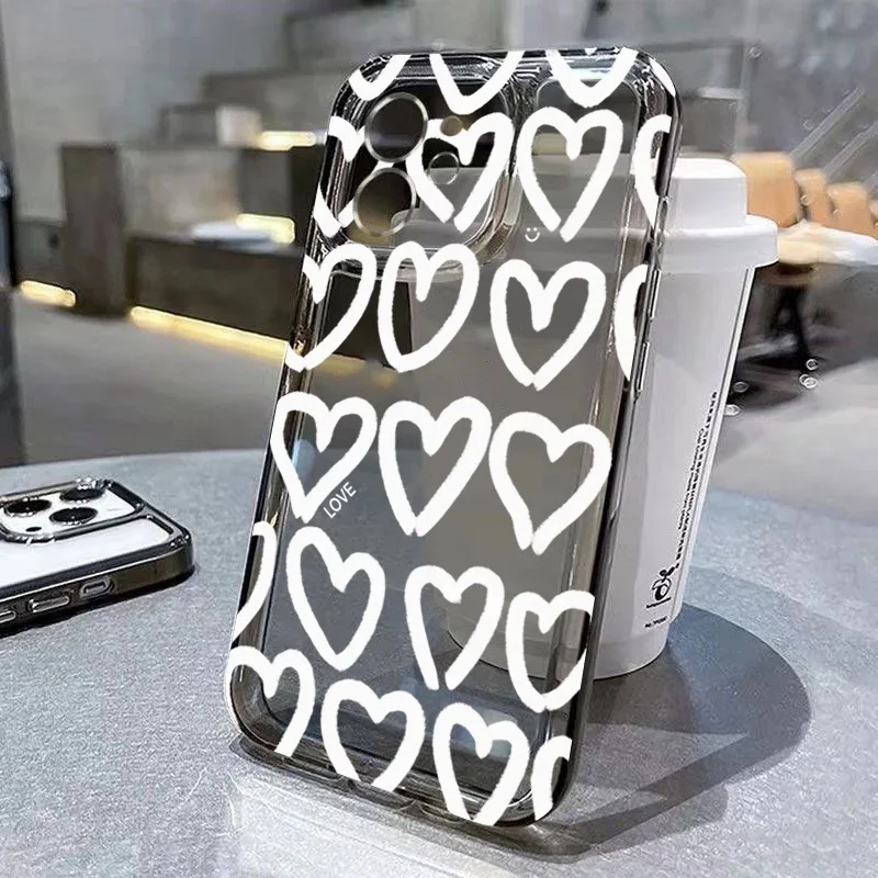 Cute Cartoon Love Heart Phone Case For iPhone 14 Pro Max 14 12 13 11 15 Case Mini X XR XS 7 8 Plus SE 2 3 Transparent Soft Cover
